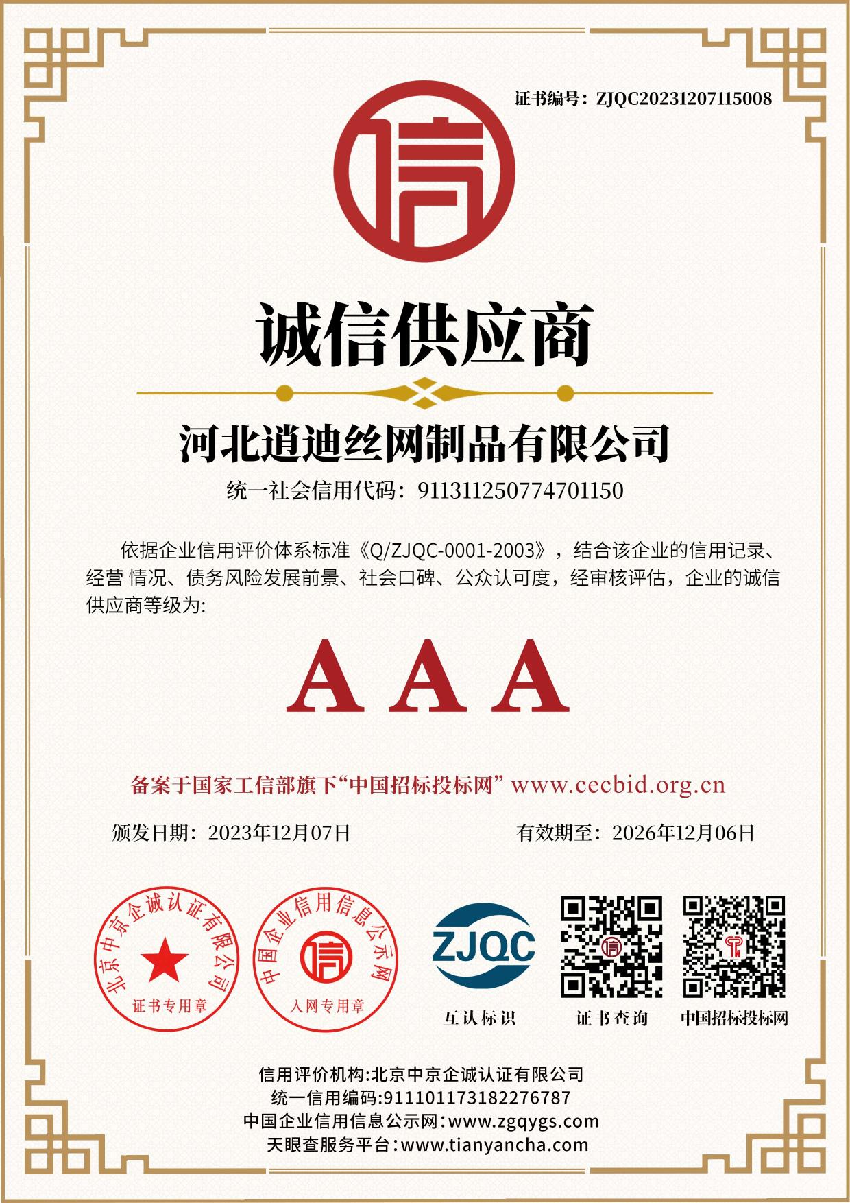 河北逍迪絲網(wǎng)制品有限公司誠信天下,誠信是我們公司一個原則問題不可撼動的,以心中有誠信的思想結交五湖四海的朋友,能達到雙贏是最好的,我們堅信朋友多了路好走,我們公司都是老朋友多,我們一直是這樣做的。河北逍迪絲網(wǎng)制品有限公司成立于2013年注冊資本壹仟伍佰萬整,主要生產(chǎn)沖孔網(wǎng),鋼格板,金屬防蟲網(wǎng),如實的實體廠家,是一家-研發(fā)-銷售-生產(chǎn)-安裝-售后一條龍公司,2019年通過了ISO 9001認證管理體系符合GB/T 19001-2016/ISO 9001:2015標準,同時通過了SGS認證,擁有商標版權2品牌,擁有一個著作版權,河北逍迪絲網(wǎng)制品有限公司位于中國有名的(絲網(wǎng)之鄉(xiāng))安平縣,于天津,北京,雄安,石家莊相鄰,交通非常發(fā)達,出口可以選擇天津港口非常近每天都有接貨送貨往返車輛,空運可以選擇石家莊正定機場,附近也有鐵路運輸,當?shù)剡€有兩個生態(tài)物流園區(qū)發(fā)往全國各地,我們沖孔網(wǎng)工廠生產(chǎn)設備有:普通沖壓機,高速沖壓機,自主研發(fā)小微孔沖壓機,龍門沖,磚塔沖孔,重型沖孔機,萬瓦級別激光切割機,3000W激光切割機,焊接設備,折彎機,校平機,剪板機,精密校平機,(對板面平整度要求苛刻的客戶群體0.5-0.2誤差)我們公司銷售市場沒有局限性國內(nèi)國外都供應,擁有出口權...